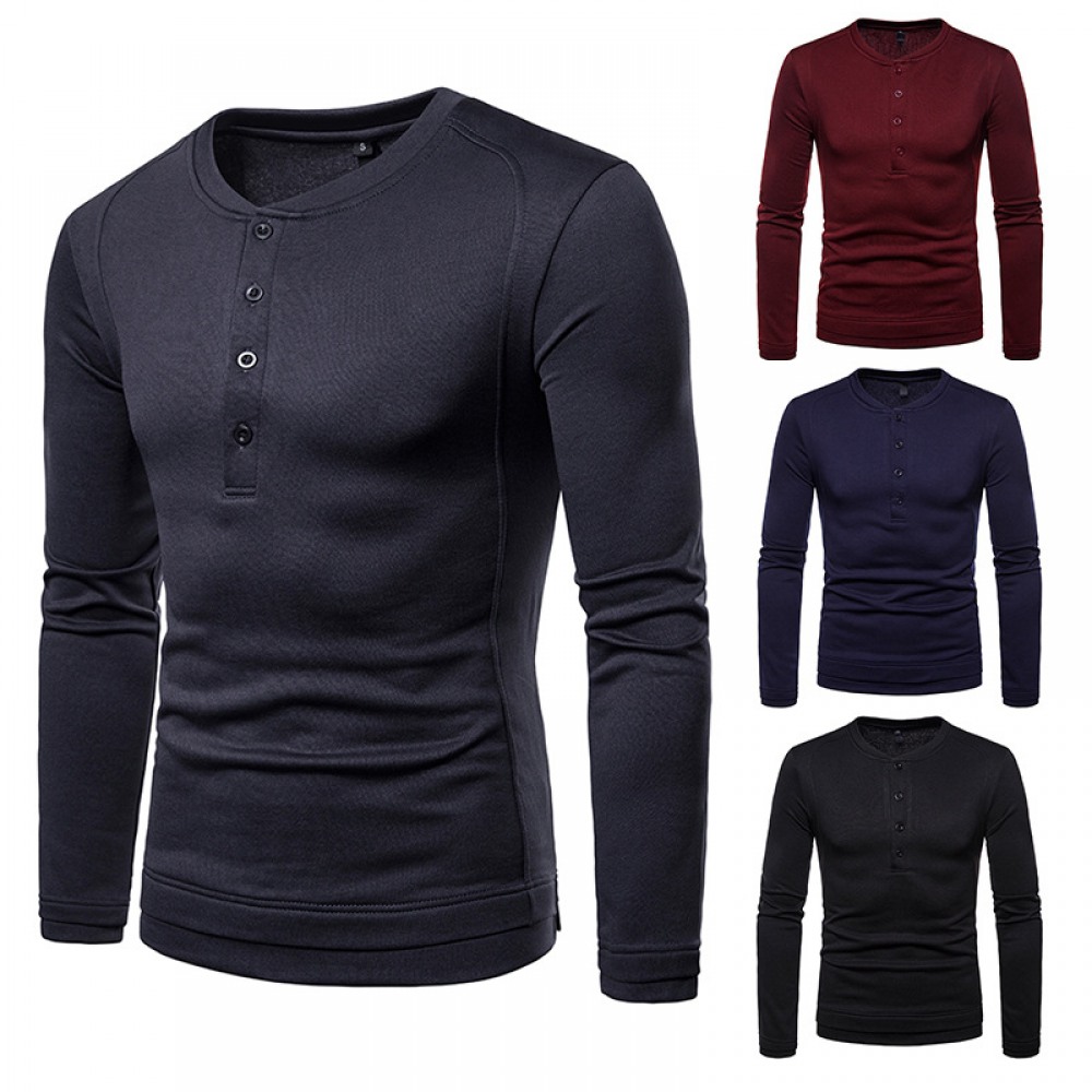Men's Plus Size Plus Velvet Warm Henley Collar Long-Sleeved T-Shirt Bottoming Shirt