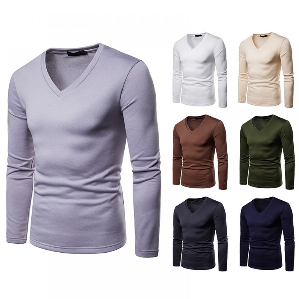 Men's Plus Size Plus Velvet Warm Long-Sleeved V-Neck T-Shirt Base Shirt