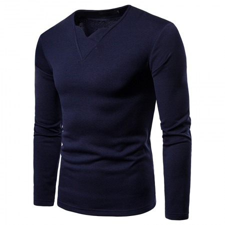 Men's Plus Size Plus Velvet Warm V-Neck Long-Sleeved T-Shirt Base Shirt