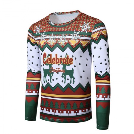New 3D Personality Printing Fashion Men's Christmas Long-Sleeved T-Shirt