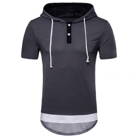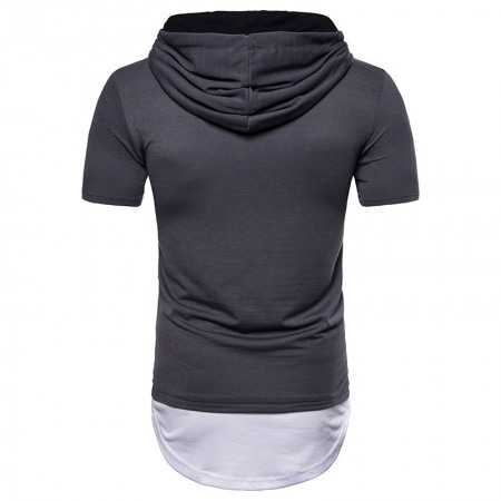New Men's Plus Size Hip-Hop Arc Short-Sleeved Hooded T-Shirt